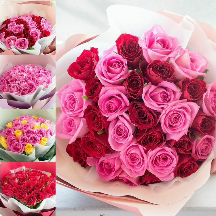 [B-1]30本バラ ピンクレッド × ニュアンス