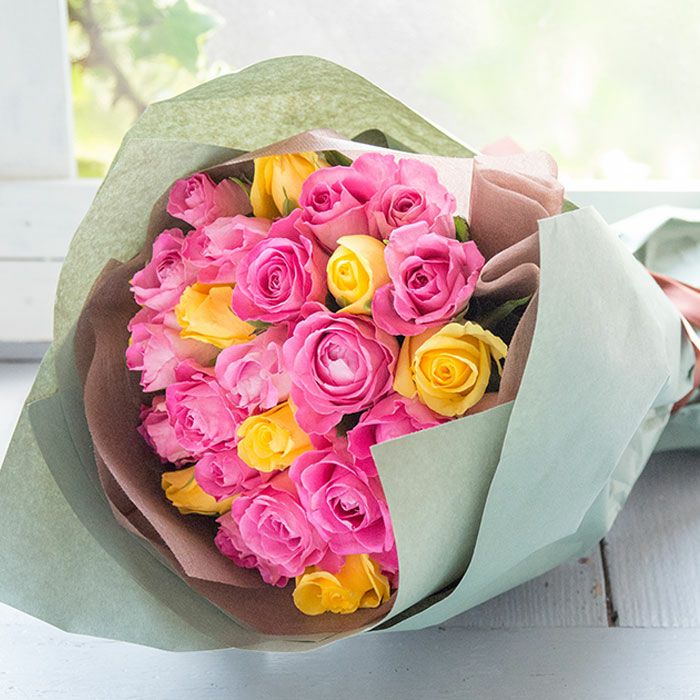 [A-2]30本バラ ピンクイエロー × バイカラー