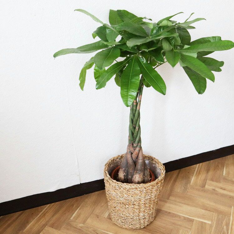 観葉植物 パキラ7号鉢+シーグラス BCホグラカゴ FKTK
