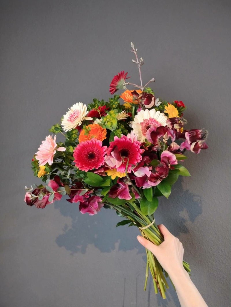 ガーベラと旬のお花おまかせブーケ 中目黒店より直送