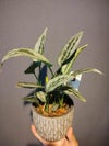 スキスマトグロッティスは、落ち着いた緑の葉に浮かぶ独特な模様が印象的な熱帯植物です。葉はサトイモ科らしい形で、葉脈に沿って淡いシルバーグリーンの斑が入ることで、シックで洗練された雰囲気を漂わせます。派手すぎず、穏やかな存在感があり、ナチュラルモダンな空間にもよく合います。