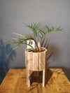 若い苗ですが、特徴的な葉のフォルムがすでにしっかりと現れており、これからの成長が楽しみなバランスです。葉の数は少なめながら整った姿で、コンパクトながらも印象的なシルエットです。