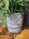 グレーがかった落ち着いたトーンのカゴに植え付けられています。軽やかな素材感と通気性があり、つるの自然な垂れ下がりと相性抜群です。シンプルながらもナチュラルな雰囲気があり、棚やサイドテーブル、窓辺など幅広い場所にしっくりなじみます。