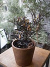 深い黒葉と落ち着いた色合いの実が特徴的で、シックな印象を演出します。ハロウィンの季節やモダンな空間のアクセントとしてもぴったりです。