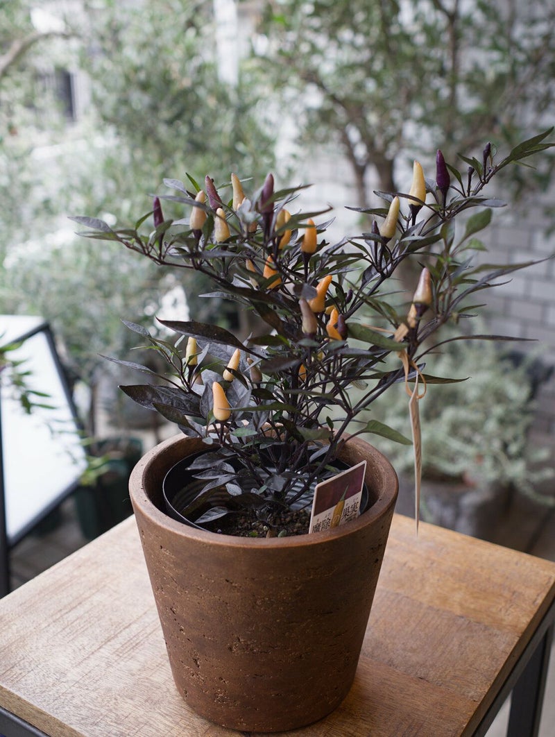 土のような落ち着いた質感と、なめらかな手触り、ブロンズの輝きが特徴で、植物のシックな雰囲気を引き立てます