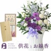 ムーンダストお供えアレンジLサイズ+日本香堂 芝山 絵ロウソクとお線香 進物用ギフトセット  生花 FKAASE