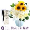 お供えひまわりアレンジ+宇野千代「淡墨の桜」お線香 生花 2025 FKAASE