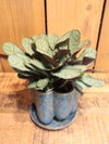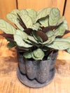 クテナンテ(ブルレーマルクシー)は、やわらかな楕円形の葉に入る淡いグリーンと濃いグリーンの模様が特徴の観葉植物です。葉の裏側はほんのり紫色を帯びており、光の角度によって表情が変わる上品な美しさがあります。コンパクトでやさしい雰囲気の株姿は、室内のインテリアグリーンとしても取り入れやすい植物です。