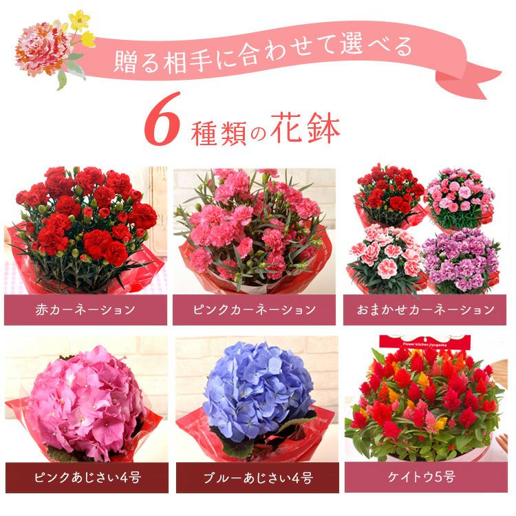 母の日 選べる花鉢 カーネーション・アジサイ・ケイトウ 選べる6種 2025 FKHH