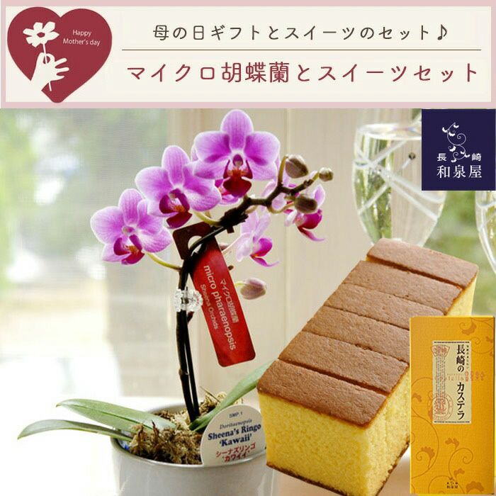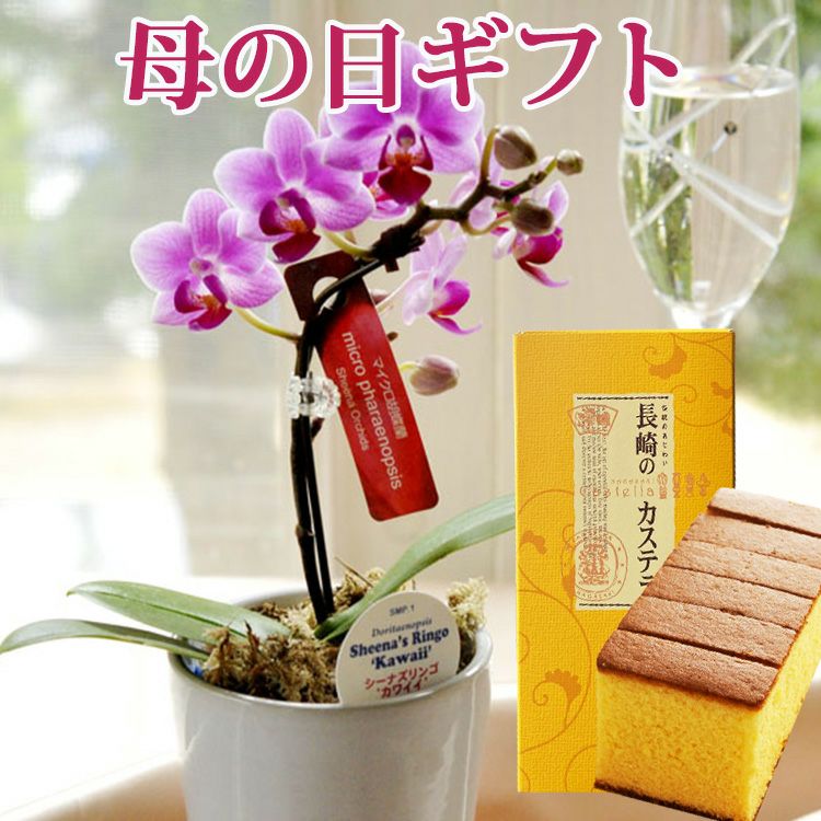 母の日 ギフト マイクロ胡蝶蘭 と はちみつカステラ スイーツセット 2025 FKHH