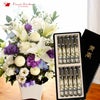 洋花を使った旬のおまかせ お供え花 Lサイズ+ 黒塗箱入り特選・淡墨の桜 生花 FKAASE