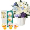 洋花を使った旬のおまかせ お供え花 Sサイズ+銀座千疋屋 銀座フルーツジュレ3個入  生花 FKAASW