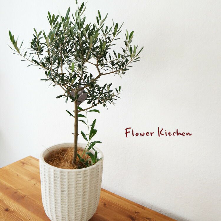 品種おまかせ オリーブ 6号鉢 フィレラウンド ホワイト鉢 ヤシ繊維・受け皿付 GF3182 FKTK