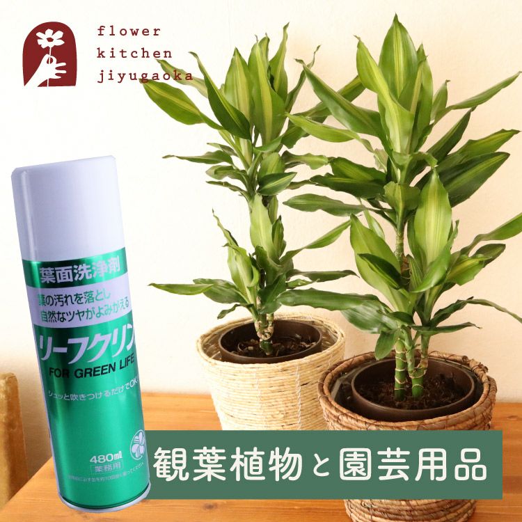 観葉植物 ドラセナ ジェレ 6号鉢 丸カゴ + 葉面洗浄剤 リーフクリン 480ml 住友化学園芸  FKTK