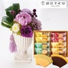 【お供え】お供えプリザーブドフラワー『花ごろも』パープルと【銀座千疋屋】銀座フルーツクーヘン ギフトセット FKTPOSW