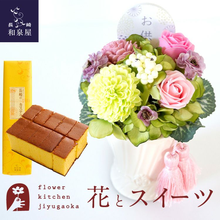 お供えソープフラワーアレンジ 『空』+長崎カステラ蜂蜜 0.5号 10切入セット FKTPOSW