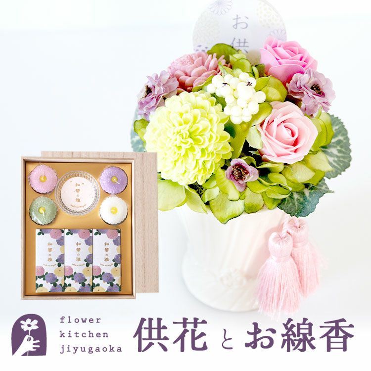 お供えソープフラワー『空』+『和華の雅』線香セット FKTPOSE