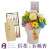 【お供え】プリザーブドフラワー「メモリアルペール」+銘香 芝山 桐箱 絵ろうそくセット FKTPOSE