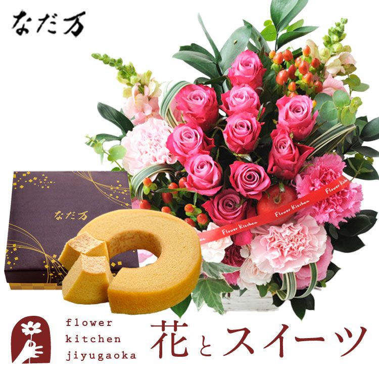 10本バラアレンジメント+なだ万監修 和三盆バウムクーヘン 生花 FKAASW