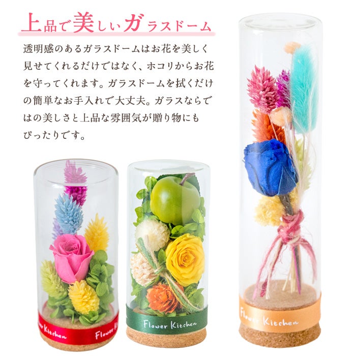 枯れないプリザーブドフラワーは水換えなどの手入れが無く、長く飾って頂けます。
