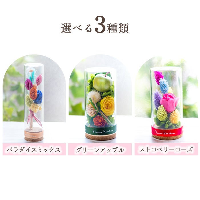 A: 一部のプリザーブドフラワー商品には、プラスチック製のクリアケースが付属します。