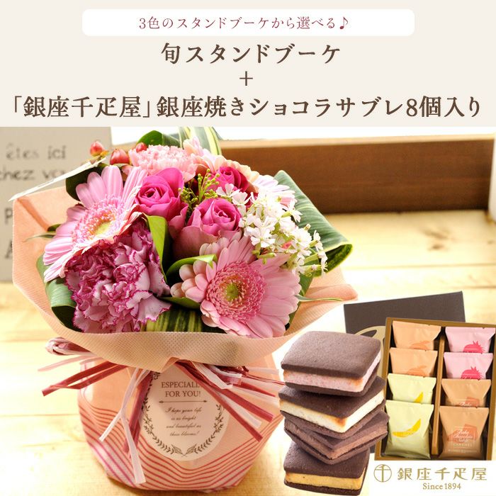 おしゃれな花とお菓子は、誕生日の定番ギフト。見て嬉しい、食べて幸せ。