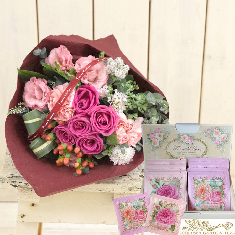 バラブーケ+チェルシーガーデンティー 化粧箱入りギフトセット 生花 FKAASW