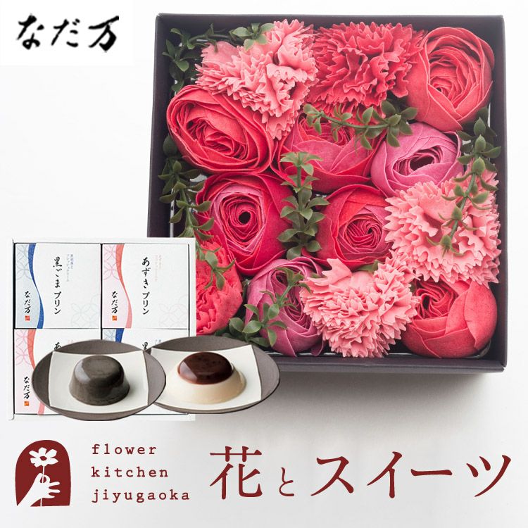 ソープフラワー バスペタルBOX Mサイズ「スリール」+「なだ万」和風プリンセット あずきプリン 黒ごまプリン  FKTPHSW