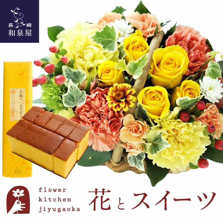 ミニョンバスケット【イエロー】+長崎カステラ蜂蜜0.5号 10切入 セット 生花 FKAASW
