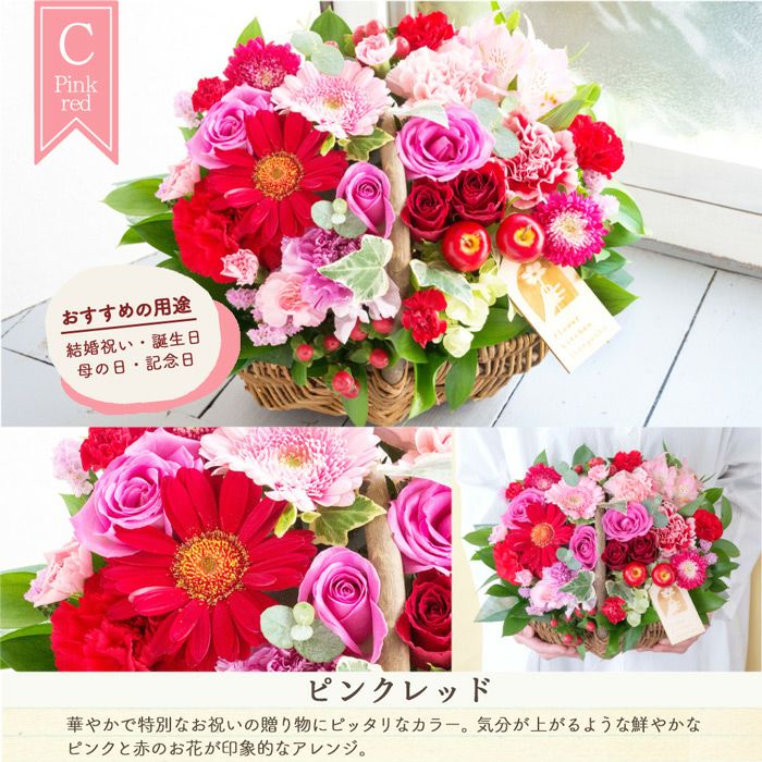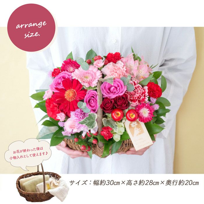 魔除けや長寿の象徴とされる赤い色にちなんで、赤い花束やアレンジメントが定番。