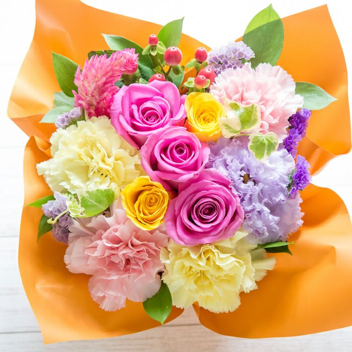 鮮やかな花の贈り物は、これからの健康と元気を願う気持ちを伝えてくれます。