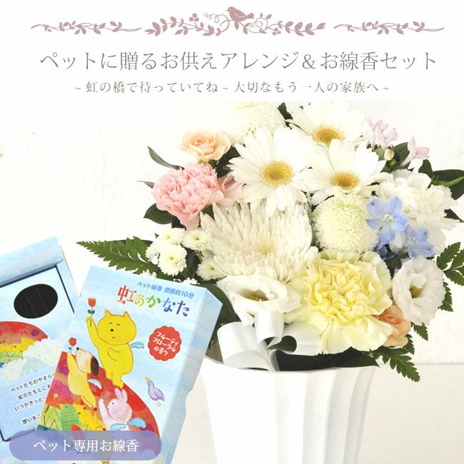 虹の橋を渡った愛しい存在へ、心を込めて贈るペット供花・お供え花。ご家族の心を癒し、ペットとの大切な思い出をそっと彩るお花をお選びください。