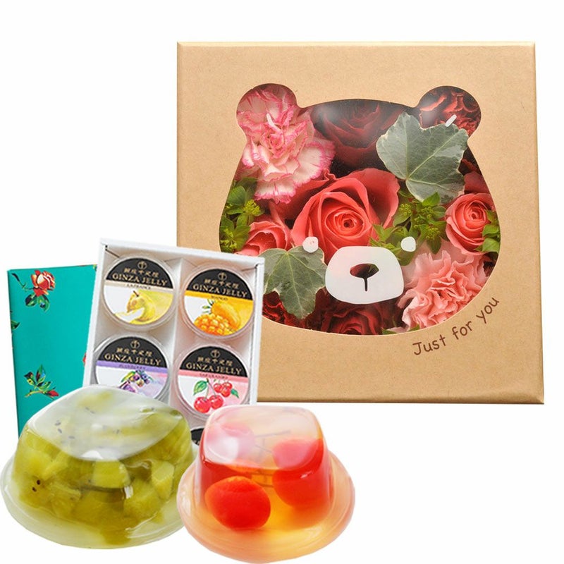 花とスイーツのセット♪ ハピネスフラワーBOX「くま」+【銀座千疋屋】銀座フルーツゼリー6個入りセット 生花 FKAASW