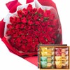バラ60本花束「レッド」バイカラーラッピング+【銀座千疋屋】フルーツクーヘンセット 生花 FKAASW