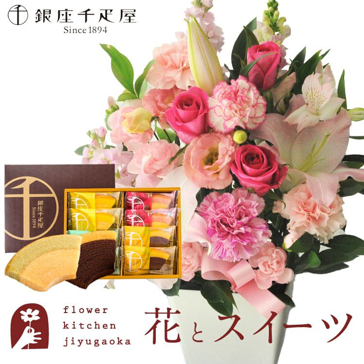 お祝いユリアレンジ ベル「ピンク」+【銀座千疋屋】フルーツクーヘンセット 生花 FKAASW