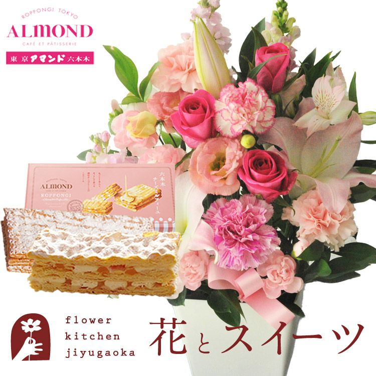 お祝いユリアレンジ ベル「ピンク」+「アマンド」チーズミルフィーユセット 生花 FKAASW
