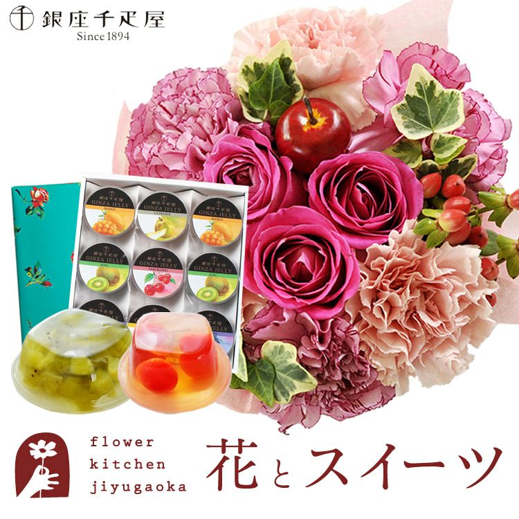 フラワーケーキ+銀座千疋屋 銀座ゼリー9個入り 生花 FKAASW