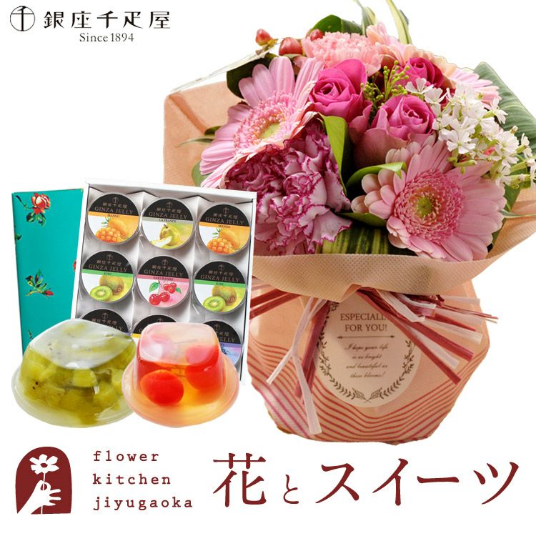 旬のスタンディングブーケ+銀座千疋屋 銀座ゼリー9個入り  生花 FKAASW