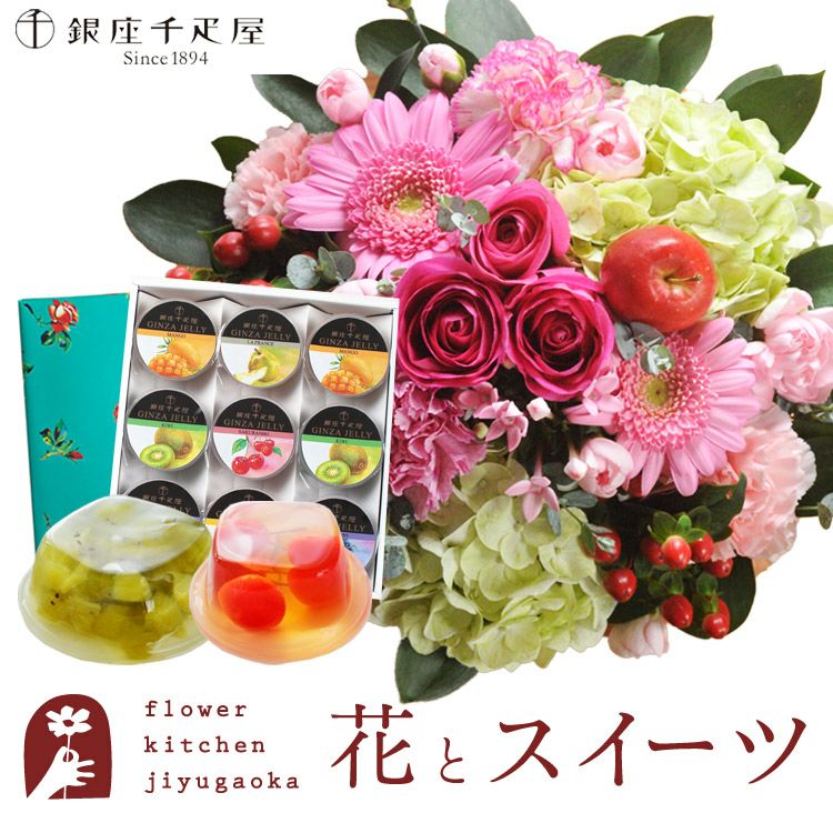 ラウンドアレンジ「ピンク」+銀座千疋屋 銀座ゼリー9個入り 生花 FKAASW