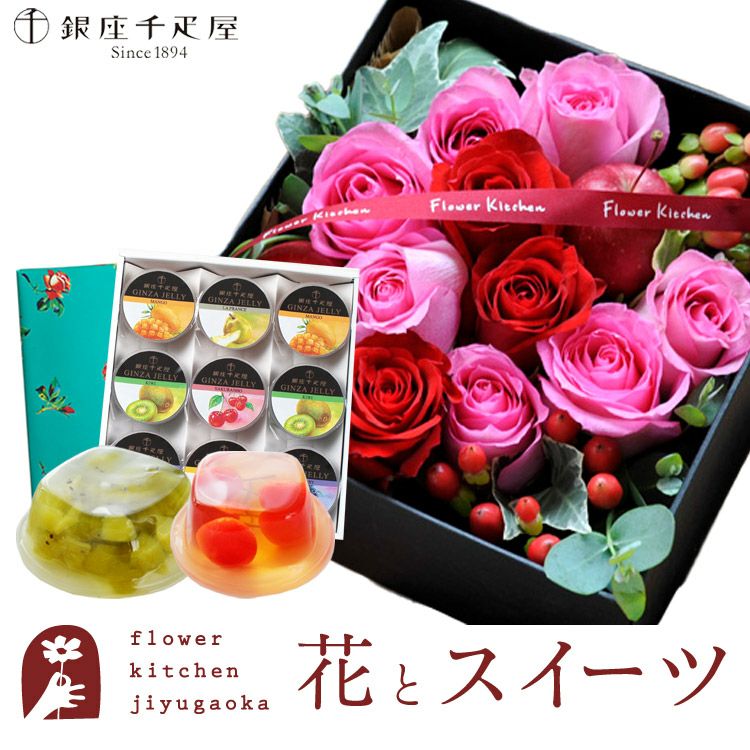 ローズプレミアムBOX「ピンクレッド」+銀座千疋屋 銀座ゼリー9個入り 生花 FKAASW