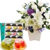洋花を使った ユリのお供えアレンジMサイズ+銀座千疋屋 銀座ゼリー9個入り 生花 FKAASW