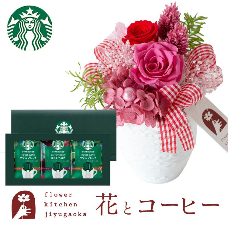 プリザーブドフラワー「ポーレット」と スターバックスコーヒーギフトセット FKTPHSW