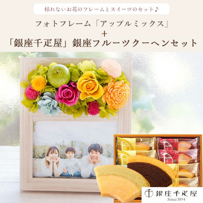 プリザーブドフラワーフォトフレーム「アップルミックス」 と【銀座千疋屋】銀座フルーツクーヘン スイーツ セット FKTPHSW