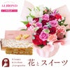 ロゼットアレンジ「ピンクレッド」+「アマンド」チーズミルフィーユセット 生花 FKAASW