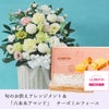 洋花を使った旬のおまかせ お供え花「風月アレンジ」+六本木アマンド「チーズミルフィーユ」 生花 FKAASW
