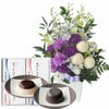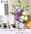 花とスイーツのセット ムーンダストを使ったお供えアレンジメントMサイズ+「なだ万」和風プリンセット あずきプリン 黒ごまプリン 4個セット 生花 FKAASW