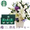洋花を使った ユリのお供えアレンジMサイズ+スターバックスコーヒギフト セット 生花 FKAASW