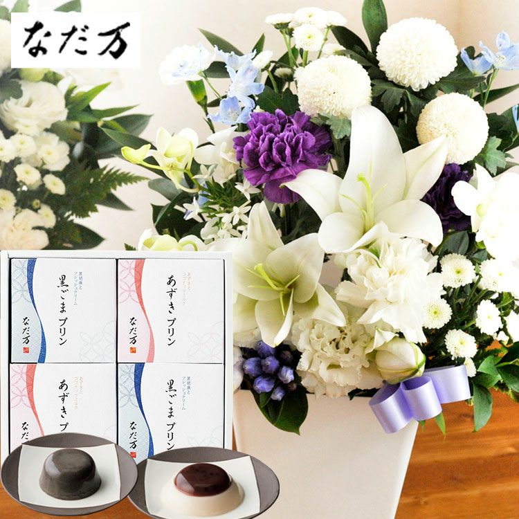 洋花を使った ユリのお供えアレンジMサイズ+「なだ万」和風プリンセット 生花 FKAASW