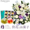 洋花を使った旬のおまかせ お供え花 Lサイズ+銀座千疋屋 銀座ゼリー9個入り 生花 FKAASW