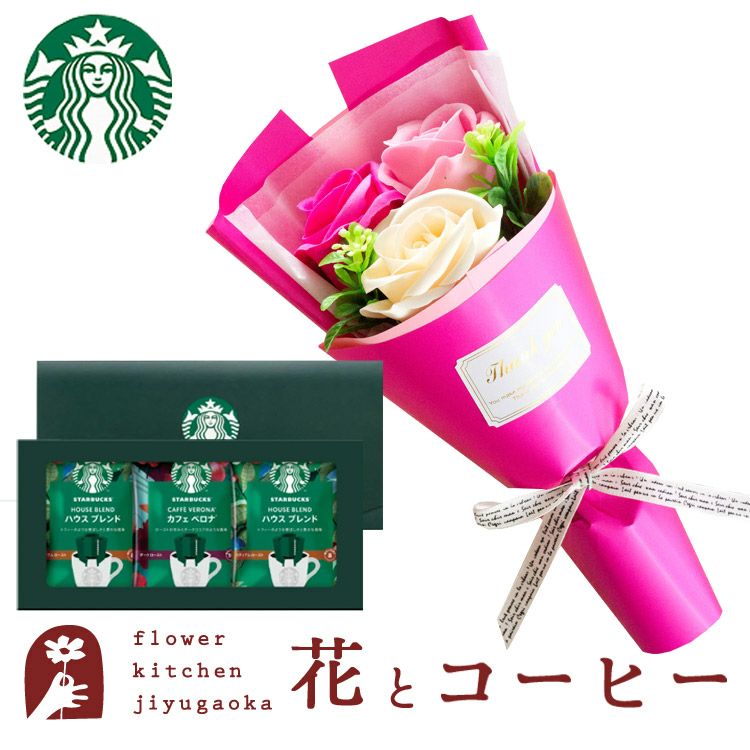 ソープフラワーフェアリーブーケとスターバックスコーヒーギフトセット FKTPHSW
